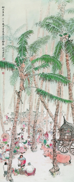 关山月一生的艺术创作总是与时代相共振。从上述抗战时期的抗战主题画创作,民族文化复兴思潮中的西北写生之作,到社会主义建设时期之《新开发的公路》(1954年)、《山村跃进图》(1957年)、《向海洋宣战》(1960年)、《绿色长城》(1973年),无不如此。关山月那紧扣历史、紧扣时代的艺术创作,都是20世纪这个历史时段的艺术见证。