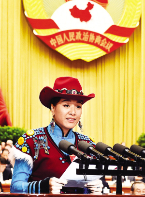 2016年,茸芭莘那在全国政协十二届四次会议第四次全体会议上发言。 资料图片