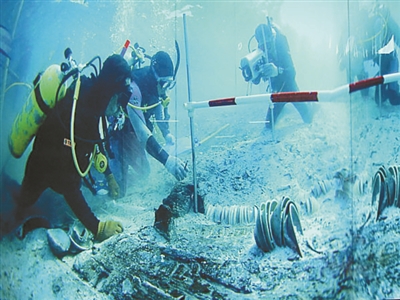 江口沉银水下考古发掘现场