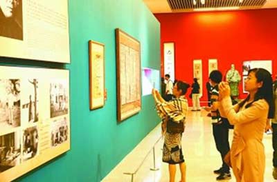 观众在国家博物馆观看“百年巨匠——四十三位文学艺术大师作品展”。金闻摄 光明图片/视觉中国