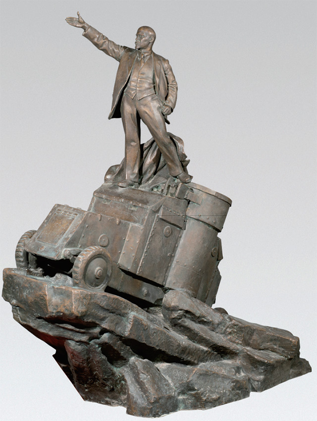 第一部分“伟大的革命”,展示了“阿芙乐尔”号巡洋舰舷窗、“十月革命万岁”旗帜等珍贵文物和20余张描绘十月革命等重大事件的油画作品,包括勃罗茨基的《1917年5月列宁在普基洛夫工厂工人大会演讲》、谢洛夫的《列宁在全俄苏维埃第二次代表大会上讲话》、格拉西莫夫的《列宁在讲坛上》、索科洛夫-斯卡利亚创作的《向冬宫突击》等经典历史题材绘画作品。此外,本部分还展出了一系列照片和明信片,它们可谓1917年2月至10月彼得格勒和莫斯科这两个俄罗斯主要城市的一份独特的大事记。