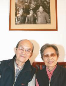 徐肖冰与侯波在跟毛主席合影的照片下留念。本报记者 刘新武摄/光明图片