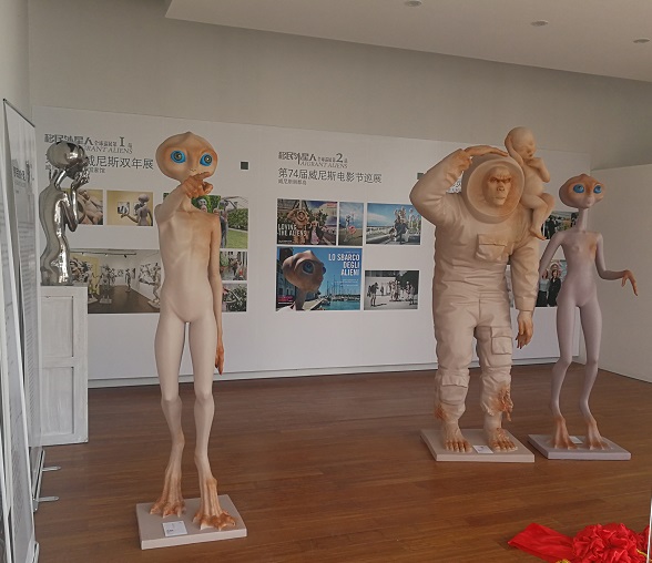 来自重庆画院的跨界艺术家傅榆翔的全球巡回展览《移民外星人》,是“科学与人类想象力研究中心”成立之后第一场活动。《移民外星人》被誉为史诗般宏大而又指向未来的雕塑装置作品。该作品采用“超现实”手法,通过移民外星人隐喻人类当前和未来的困境和出路:一方面,科技正在带领人类发现全新的宇宙;另一方面,人类自身却异化于以往熟悉的环境。移民外星不单从社会人类学考证人类和历史,也从未来学角度思考当下的多元时代。