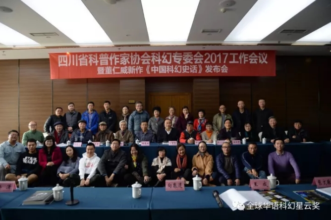 2017年12月9日,四川省科普作家协会和清华大学出版社共同在成都大成宾馆召开董仁威新作《中国百年科幻史话》发布会。会议由四川省科协副主席、四川省科普作家协会理事长吴显奎和清华大学出版社第八事业部主任张立红共同主持,四川省科普作家协会副理事长陈俊明、杨再华、黄寰,秘书长董晶,副秘书长乌珠热、任路遥,科幻专委会主任姚海军,副主任杨枫、张春晓,少儿科普报刊专委会主任张卫星,办公室主任李茂荣,理事会秘书郑洁,四川大学新闻学院创始人、老院长、博导邱沛篁教授,四川历史学会会长谭继和教授,《科幻世界》杂志创始人、原社长杨潇,《科幻世界》杂志创始人之一、原总编辑谭楷,著名汉学家张昌余教授,著名冰川学者张文敬研究员,著名出版家、四川教育出版社社长雷华,著名出版家、四川科学技术出版社钱丹凝社长,世界华人科普作家协会秘书长何定镛、副秘书长李庆雯、方守默、贾英杰,世界华人科幻协会常务副秘书长阿贤,四川省气象局副局长马力,《科幻世界》杂志社副总编辑拉兹,著名科幻作家及理论研究者刘兴诗、王晓达、谢云宁、彭柳蓉、王林柏、姜永育、何大江、徐渝江、尹代群、黎婵,火舌文化董事长唐风、奇影动漫公司董事长付胜、奇影动漫公司合伙人钟诚、达州科普作家协会秘书长向胤道,四川省科普作家协会常务理事王成、李蓉君等四川省科普科幻界人士40余人欢聚一堂,祝贺董仁威《中国百年科幻史话》的出版。