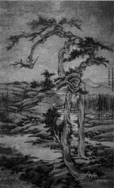 而藏于台北故宫博物院的《双松图》也是代表。此图在吴镇作品中署年款最早,题款中有“泰定五年”数字,则此图应为1328年作品,吴镇时年49岁。