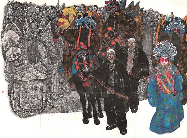 图为参展作品之一——雷雪娜的《西府社火》 (黄尚恩)