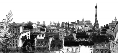 写生稿《巴黎屋顶》