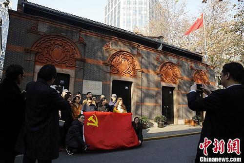 资料图:民众在中共一大会址合影留念。 中新社记者 汤彦俊 摄