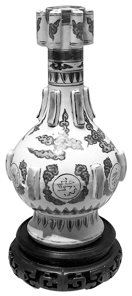 然则,若仅是对伊斯兰教兴趣浓厚,尚不足以解释阿拉伯文、波斯文盛行于御窑瓷器之上。毕竟,青花瓷上早有伊斯兰文化种种印迹,何以在正德朝,文字图案之风骤起?实际上,正德帝个性突出,虽举止荒诞,自幼便智商极高,亦应具语言天分。《明实录·武宗实录》中说他“佛经梵语无不通晓”。《皇明世法录》则称,正德帝贯通回经(即《古兰经》)三十卷。据目前的研究状况,《古兰经》在明代时似尚无汉语译本。若果真如此,则意味着正德帝所贯通的是阿拉伯文的《古兰经》。除此之外,正德帝对藏文、八思巴文(图8)亦有所涉猎。种种迹象表明,学习外语是正德帝的一项重要的业余爱好。正德帝嬉乐之余,掌握的外语有三四种之多。语言学习绝非易事,正德帝热衷学习的语言,多为邻国或国内番众之语,恐怕绝非仅为逸乐。至于在皇家瓷器上设计一二,“显摆显摆”自己外语、研习外来文化的种种成果,可能只是正德帝语言学习之余的一种自我陶醉娱乐之法吧。
