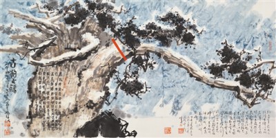 我画古木,一是喜其造型奇崛,笔墨可苍拙老辣;二是喜其精神,此正如孔夫子所言:“岁寒,然后知松柏之后凋也。”因之,我画嵩阳古柏,就体会汉武帝所封的大将军、二将军古柏造型与人物气质、江山栋梁的关系;画泰安普照寺一品大夫松,就将其置风雪之中,取《庄子》“澡雪而精神”之意,名《澡雪图》,总是希图寄托些关乎人文、人格的内美。