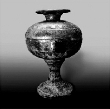 故郡遗址墓葬以积石墓为主,遗物有铜鼎、匏壶、壶、豆、敦、匜、盆、舟、勺、剑、戈、鐏、镞、带钩、当卢及金盘丝耳环、金箔片、绿松石、环、佩、管、水晶珠等。