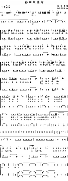 刘新圈曾以打油诗谈创作心得,“歌词选题最重要,新鲜角度离不了”。这首歌以“春到最北方”为主题,可以说在众多写内蒙古大草原的歌曲中获得了新的角度。内蒙古大草原横亘在中国的最北部。虽然中国领土最北端在黑龙江省,但占据北部疆土面积最大的是内蒙古自治区。春天是从南方一点点来到北方的,等春天蔓延到祖国的最北方时,意味着已是祖国万里江山处处春了。