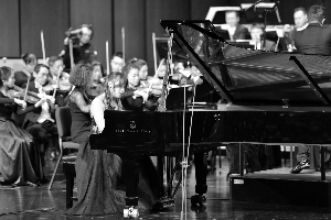 音乐会的最后一首曲目是由钢琴组冠军选手,来自中国的潘林子演奏的柴可夫斯基的《降b小调第一钢琴协奏曲》,年仅23岁的她演奏起来却是十足的大将风范。