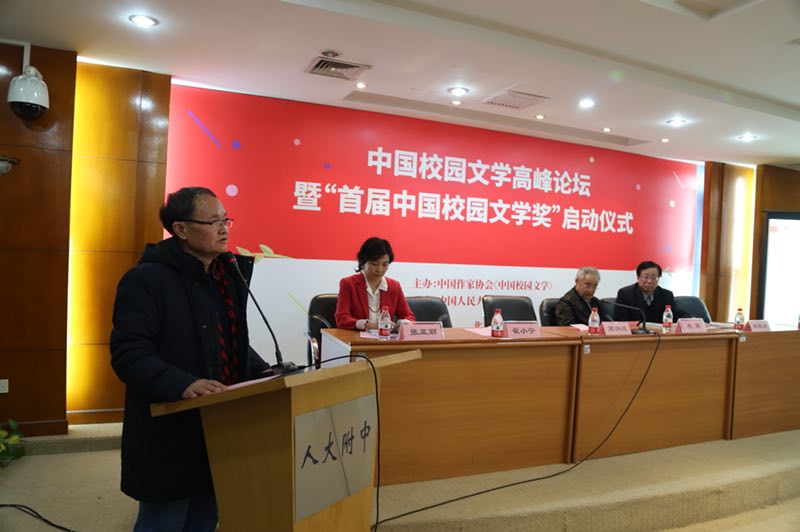 为推动中国校园文学的健康发展,3月23日,电竞竞猜官网下属的《中国校园文学》杂志联合中国人民大学附属中学举办的“中国校园文学高峰论坛暨‘首届中国校园文学奖’启动仪式”在京举行。