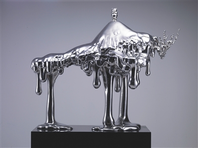 另一方面,作品以超现实的山石消融流淌的图景,表现了一个虚静空明、静观默想的纯化世界,关于融化、流淌、凝固的主题让人体味着时间的可变化性和空间的无秩序性,试图唤起人们对自身日常的参照系统和外部世界的重新审观,从而寻找到一个内在与外延相互平衡的临界点。作品中历史与现实、抽象与具象、幻想与现实相互冲突、相互投射而又同存一体,凸显了现代文明与传统文化之间的解构与重建,传递与融合。