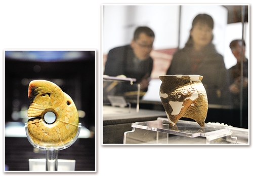 梁带村芮国遗址博物馆内展出的玉猪龙。 新华社发 张博文摄
