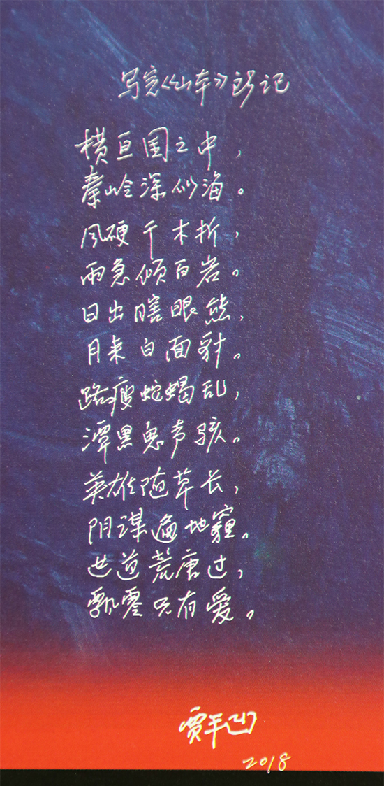 “巨大的灾难,一场荒唐,秦岭什么也没改变,依然山高水长,苍苍莽莽,没改变的还有情感,无论在山头或河畔,即便是在石头缝里和牛粪堆上,爱的花朵仍然在开,不禁慨叹万千。”