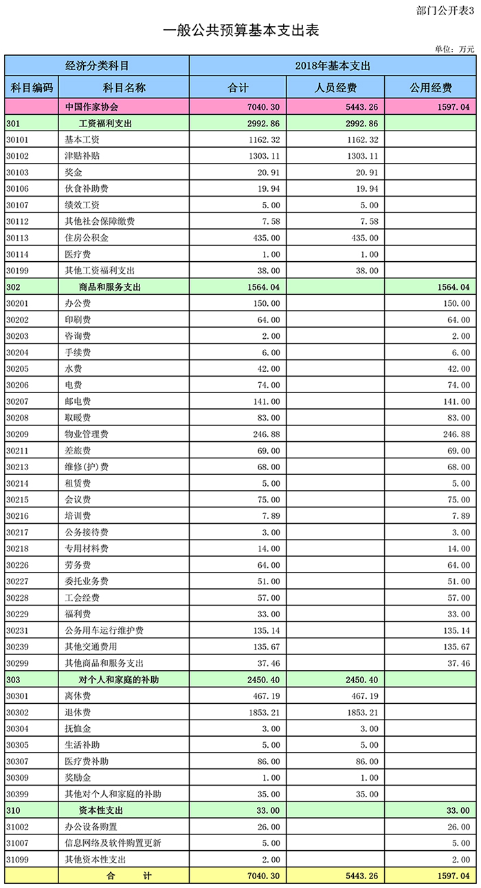 2018年电竞竞猜官网部门预算报表如下: