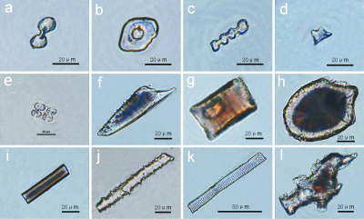 东阳遗址中常见植硅体类型(资料照片)。新华社发