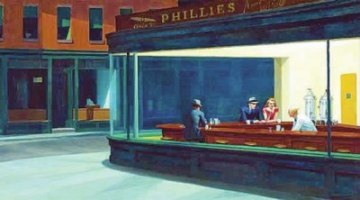 爱德华·霍普创作于1942年的名作《夜游者》,激发布洛克邀请16位美国著名小说家,连同他自己,分别以霍普名画为题材创作短篇小说。(均中信出版集团供图)