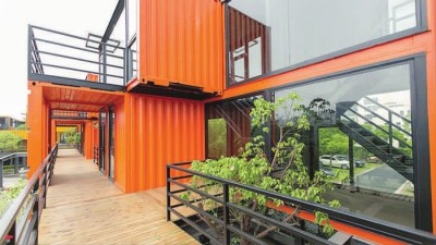 目前正在二期建设中的智慧湾科创园,以其独特的集装箱堆叠造型引来上海影视摄制服务机构的关注。(智慧湾供图)