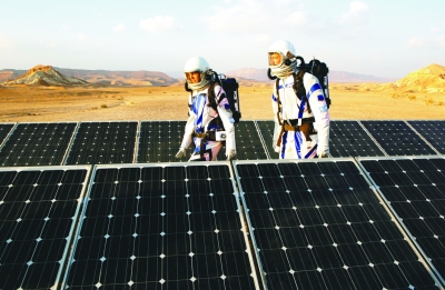 在以色列内盖夫沙漠中的火星沙漠研究站,志愿者“宇航员”执行“太空任务”。火星沙漠研究站是在以色列航天局支持下建立起来的一个火星模拟基地,位于以色列南部一片沙漠的腹地中。图为新华社发