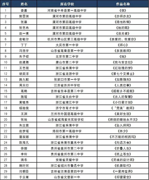 关于第九届全球华语科幻星云奖青少年优秀作品奖入围名单的公告