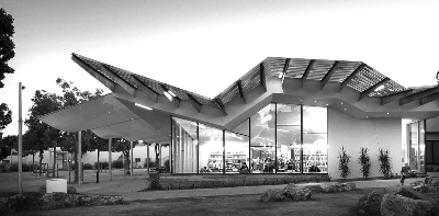 加利福尼亚州圣莫尼卡皮科分馆。该馆位于圣莫尼卡弗吉尼亚大街公园中,不仅提供了各种教育文化资源,还为社交提供了场所。该馆面积近9000平方英尺,充分挖掘了各种没有使用的空间,进一步拓展了公园广场的活动功能。该馆获得了美国绿色建筑白金认证,充分利用了自然采光、遮阳等技术:天窗和雕花天花板有助于最大限度地利用光线,凸显图书馆的建筑特征;长长的挑檐和顶篷可以保护玻璃免受阳光直射,并消除阴影的影响。通过雨水收集系统,图书馆从其屋顶和相邻建筑物的屋顶收集雨水,在过滤之后用于冲洗厕所。