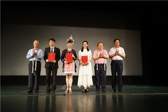 中国少数民族作家学会常务副会长叶梅等为摄制单位颁发荣誉证书 陈泽宇 摄