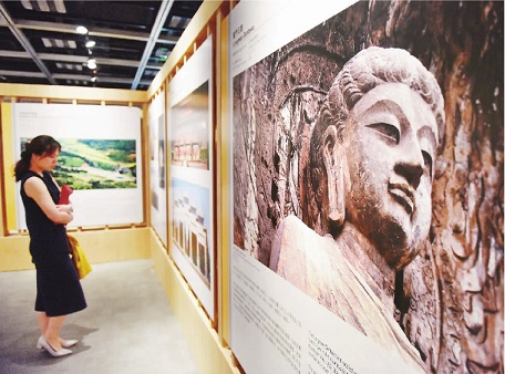 5月29日,由香港特区政府康乐及文化事务署和中国古迹遗址保护协会联合主办的“中国世界文化遗产三十年图片展”在香港文物探知馆举行开幕典礼。展览通过百余幅珍贵图片展示中国在世界文化遗产事业中取得的瞩目成就,展期为5月30日至8月12日。图为参观者在欣赏展览上的图片。