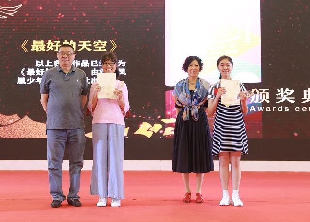 专家为获少年创作奖的获奖者颁奖