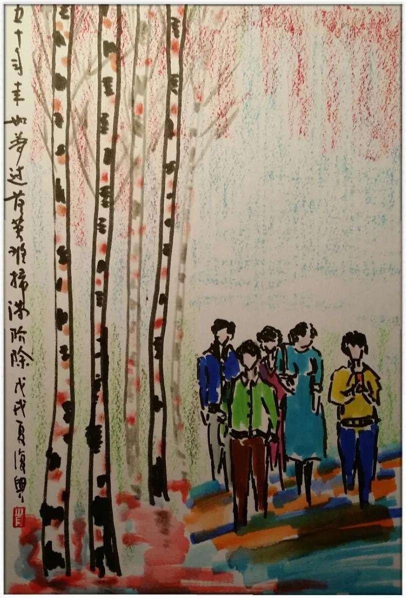 这一天,我画了几幅小画,写了两首小诗,算作一个人的纪念吧。