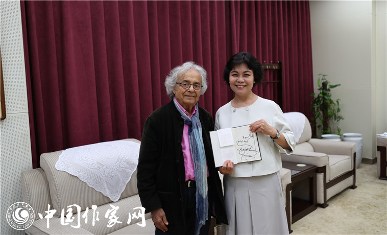 参加国际写作计划的叙利亚诗人阿多尼斯向电竞竞猜主席铁凝赠送了自己的诗集