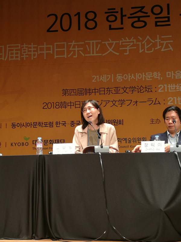 韩国作家陈恩英在论坛上发言