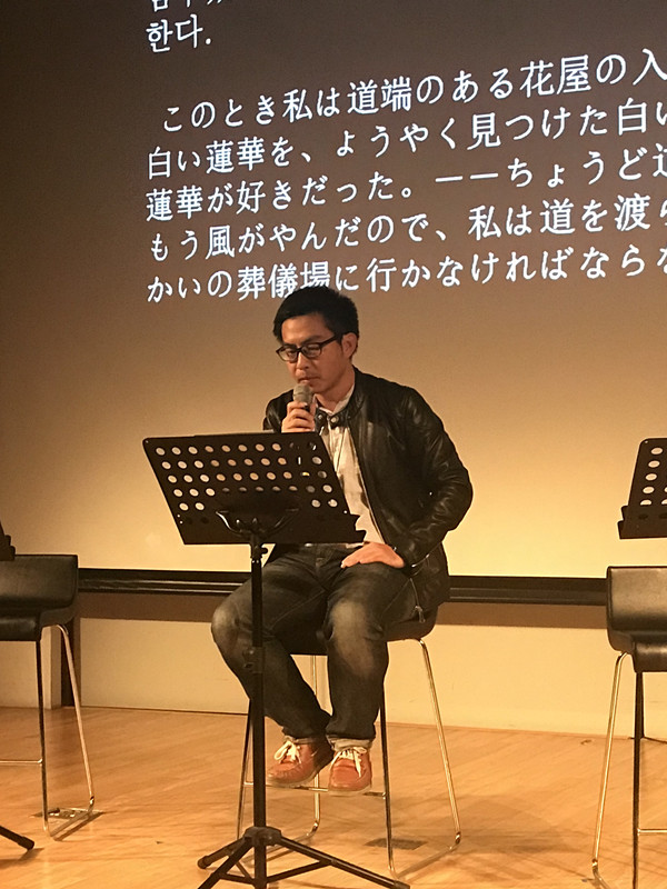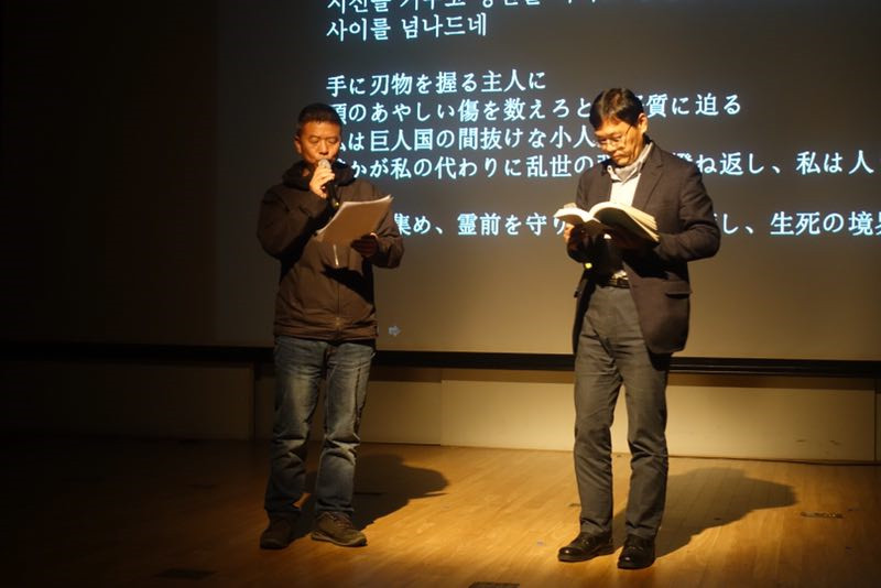 雷平阳和韩国诗人郭孝桓在“文学之夜”活动上一起朗诵