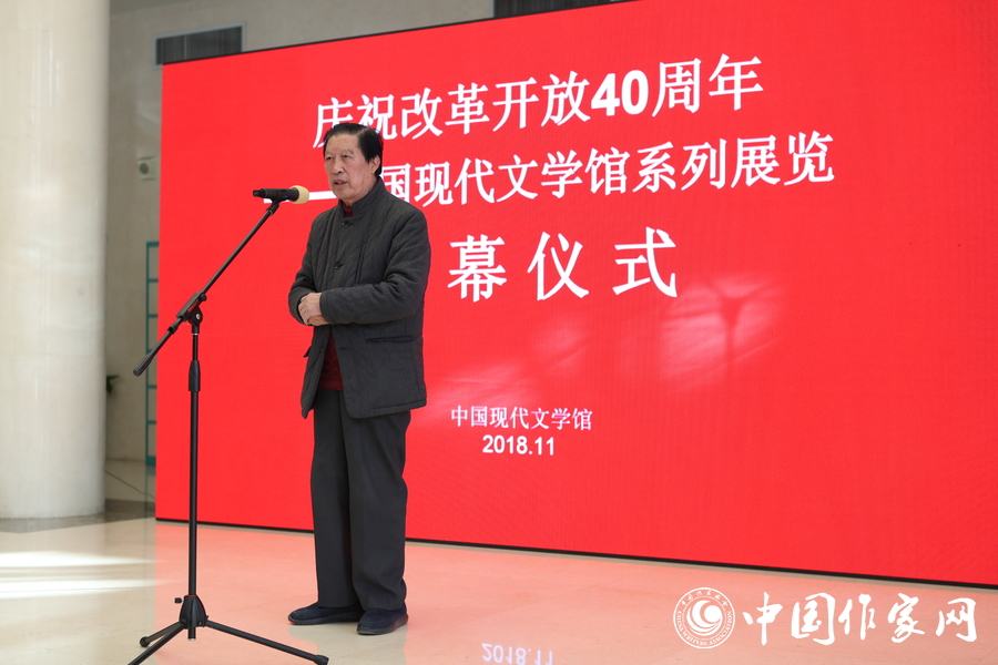 中国现代文学馆原副馆长、编辑家周明和评论家孟繁华在开幕仪式上发言。他们回顾了改革开放40年来中国文学事业发展取得的辉煌成就,以及中国现代文学馆成立以来与中国文学一路同行、不断发展的历程,对此次系列展览的举办予以高度评价。