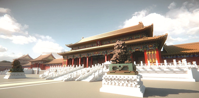 而建造故宫模型的“国家建筑师&Cthuwork工作室”,正是游戏《我的世界》中玩家所组成的团队。为了制作“紫禁城”,前后有超过140人参与,齐心合力,耗时三年。正是这些团队成员辛勤的耕耘,才让这一虚拟模型赢得了故宫数字文化艺术展上人们的赞叹。《紫禁城》共使用了一亿多个方块,细致地拼搭起故宫中的太和殿、御花园、景福宫等诸多建筑。在细节上,制作团队参考大量影像资料,精致地还原了紫禁城内的桌椅及壁画等内部结构,细节上的精雕细琢令人叹为观止。当“游客”登录游戏访问“紫禁城”时,就仿佛置身于真正的故宫之中,而由那些方方正正的方块拼成的模型,又会产生出一种马赛克壁画的效果,更是别有一番风味。