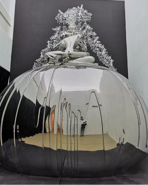 《宫巢》 不锈钢、人工水晶、机械装置、手工蛋 560 x 420 x 380cm 2018