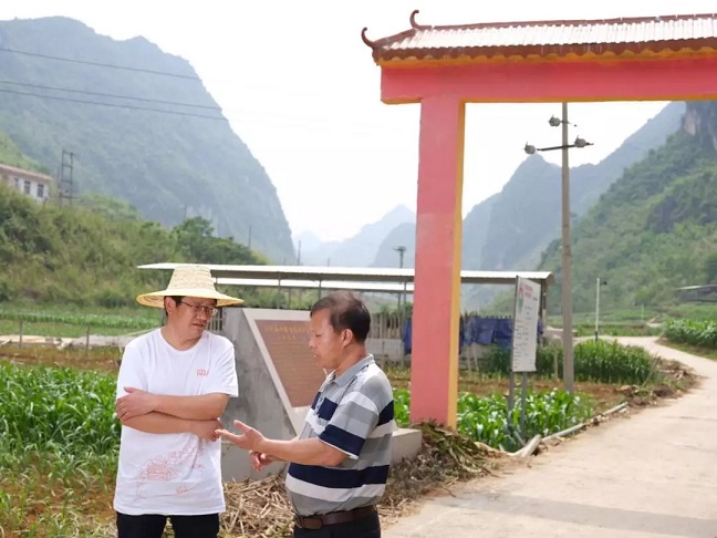 “村暖花开”采风代表团深入广西田东县坡教村采访 摄影:赵卫国