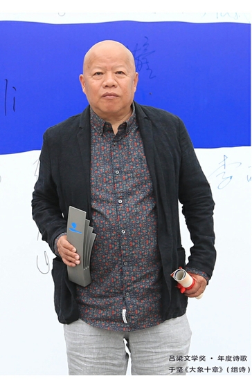 吕梁文学奖·年度诗歌由知名诗人于坚的《大象十章》(组诗)夺得,《大象十章》被评委会评价为“将‘大象’这一徐缓而稳重的、大吨位的、渐次消失的物种语言和镜像,放置于当代生活的物象与心象的对看与反诘之间,驱使那些在消费时代无以拼凑、无以完成华丽而快速转身的总体性事物,转化为大开大合、大块文章、云卷云舒的辞章气象。”于坚对吕梁文学季表示了感谢,“这个奖突出了‘乡村’这个词,我非常看重这个奖,吕梁文学奖是在东方发生的、深刻的、有益于文学书写的事件。”