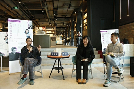 (左起)孔亚雷、黄昱宁和人文社编辑马博与读者分享《此时此地》