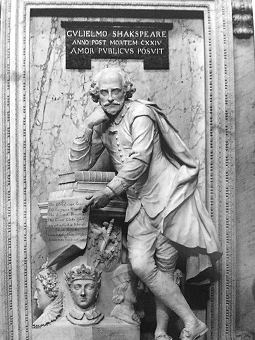 英国威斯敏斯特教堂内“诗人角”的莎士比亚雕像。图片由傅光明先生提供