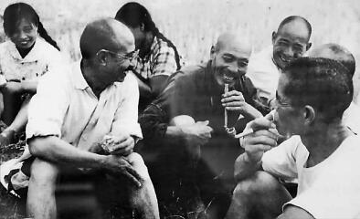 柳青(前排左一)与皇甫村农民在一起