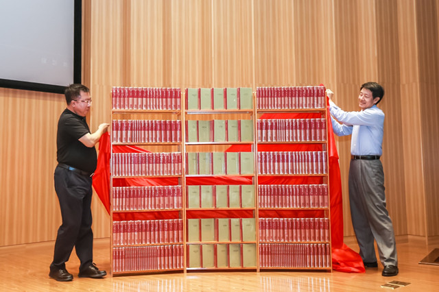 人民文学出版社社长臧永清(左)与中国社会科学院外国文学研究所所长陈众议共同为新版“外国文学名著丛书”第一辑揭幕(图片由人民文学出版社提供)