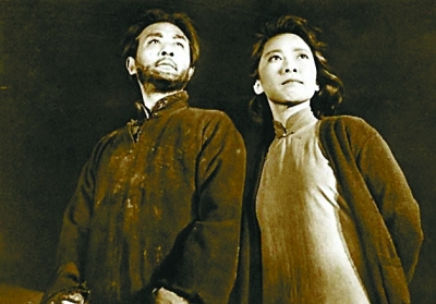 电影《烈火中永生》剧照,赵丹(左)饰许云峰,于蓝饰江姐