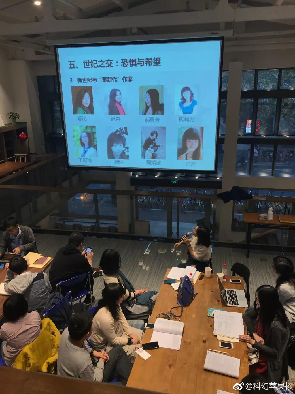 苹果核的活动上,夏笳在讲述女性科幻作家的话题
