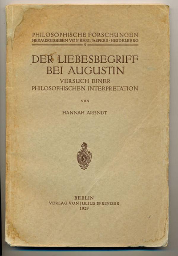 汉娜·阿伦特1929年在她的导师,著名存在主义哲学家雅斯贝尔斯指导下完成了博士论文《奥古斯丁的爱的概念》(Der Liebesbegriff bei Augustin),这是她登上学术舞台的首部著作,1929年由施普林格出版社在柏林出版。受她政治思想吸引的的研究者们很少注意到这部以神学为主题的作品,但在奥古斯丁学界,她大胆挑战这位教父权威的观点却不时受到关注。其实阿伦特跟她的另一位著名导师海德格尔一样,都是从神学转向了哲学研究。阿伦特十六岁就读过康德的《纯粹理性批判》和《理性界限内的宗教》,她高中从文科中学退学后,先在柏林大学旁听了几个学期。在那里,天主教存在主义神学家罗曼诺·瓜尔蒂尼(Romano Guardini)的神学课吸引了她,接着她醉心于丹麦神学家和哲学家克尔凯郭尔的著作,从而做出了主修神学的决定。1924年她提前一年通过了中学毕业会考获得大学入学资格,进入了马堡大学。阿伦特在马堡期间也选修过德国神学家鲁道夫·布尔特曼(Rudolf Bultmann)的新约神学课程,布尔特曼以对“新约的非神话化”研究著称。不过阿伦特很快就放弃了神学,转而跟随海德格尔和雅斯贝尔斯所引领的哲学批判潮流。