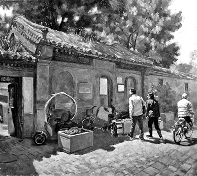 说到画展,就得说画什么、怎么画。有个名人说过:世界上不是缺少美,而是缺少发现美的眼睛。这次参展的画家都是老北京,我上溯三代都是纯种的北京劳苦大众。所以我对老北京的一砖一瓦都爱得深切;我还“忝称”——这不是文人之雅言——拿老百姓大实话说就是“典见着脸自称”,我是学历史的,又在新闻行当30年,所以我所画的大多是老北京的胡同、门楼,并且在历史上熠熠生辉,且与新闻密切相关。北京是一座名副其实的历史文化名城,许多看似极普通的胡同、老屋,一旦了解了它的“想当年”,必定让人浮想联翩,咀嚼其厚重的历史内涵、体味其丰富的文化底蕴,这是一座城市的灵魂。