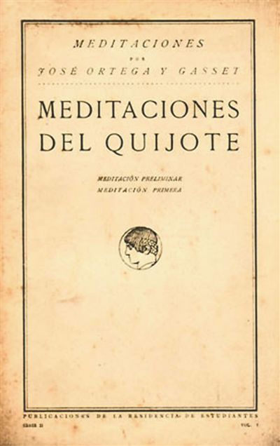 1914年,奥尔特加出版了第一本著作《〈堂吉诃德〉沉思录》。100多年来,学界始终对这本薄薄的小册子兴趣盎然、研究不断。奥尔特加将自己对哲学、美学、文学以及西班牙国情等问题的思考进行了理念层面的概述与建构。人们认为在这些文字中,“闪烁着这位年轻哲人对自己尚未完全成形的思想体系最初的灵感,对他未来的哲学思想具有奠基性、关键性的作用”。