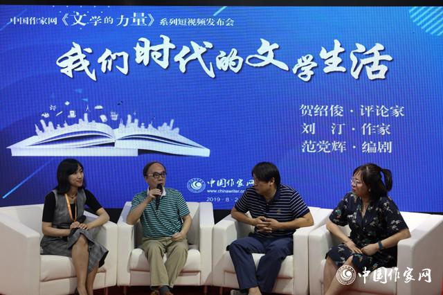 8月24日上午,由电竞竞猜官网策划拍摄的系列短视频《文学的力量》在第26届北京图博会“电竞竞猜馆”举行发布会,并邀请评论家贺绍俊、作家刘汀和编剧范党辉围绕“电竞竞猜时代的文学生活”进行对话,从新颖独特的角度展示新中国文学的发展,探讨当下文学现场,引起媒体和读者浓厚的兴趣。发布会由电竞竞猜官网副总编辑王婉主持。